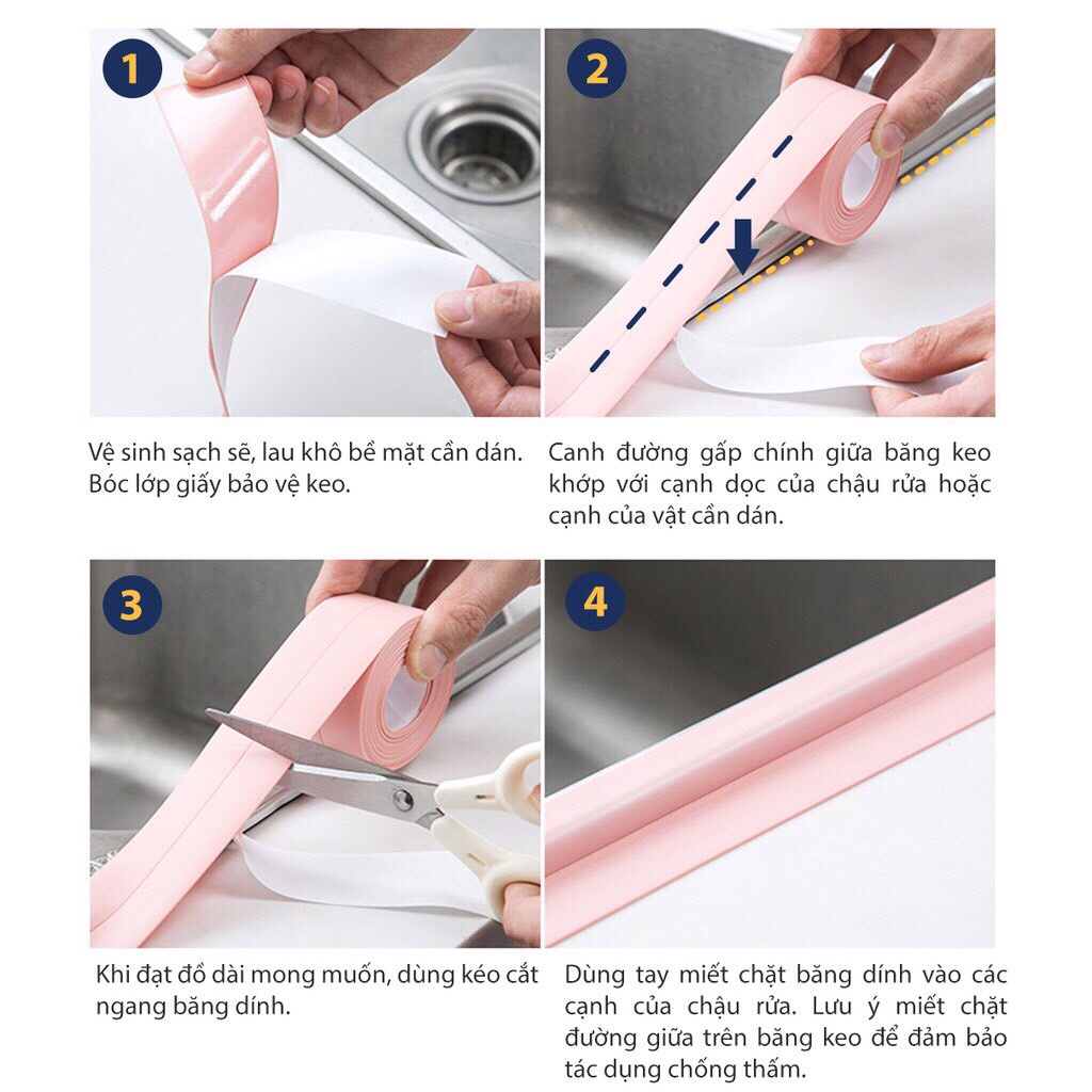 Giới thiệu Cuộn băng keo dán viền bồn rửa chén bát, nhà bếp, nhà tắm chống thấm nước