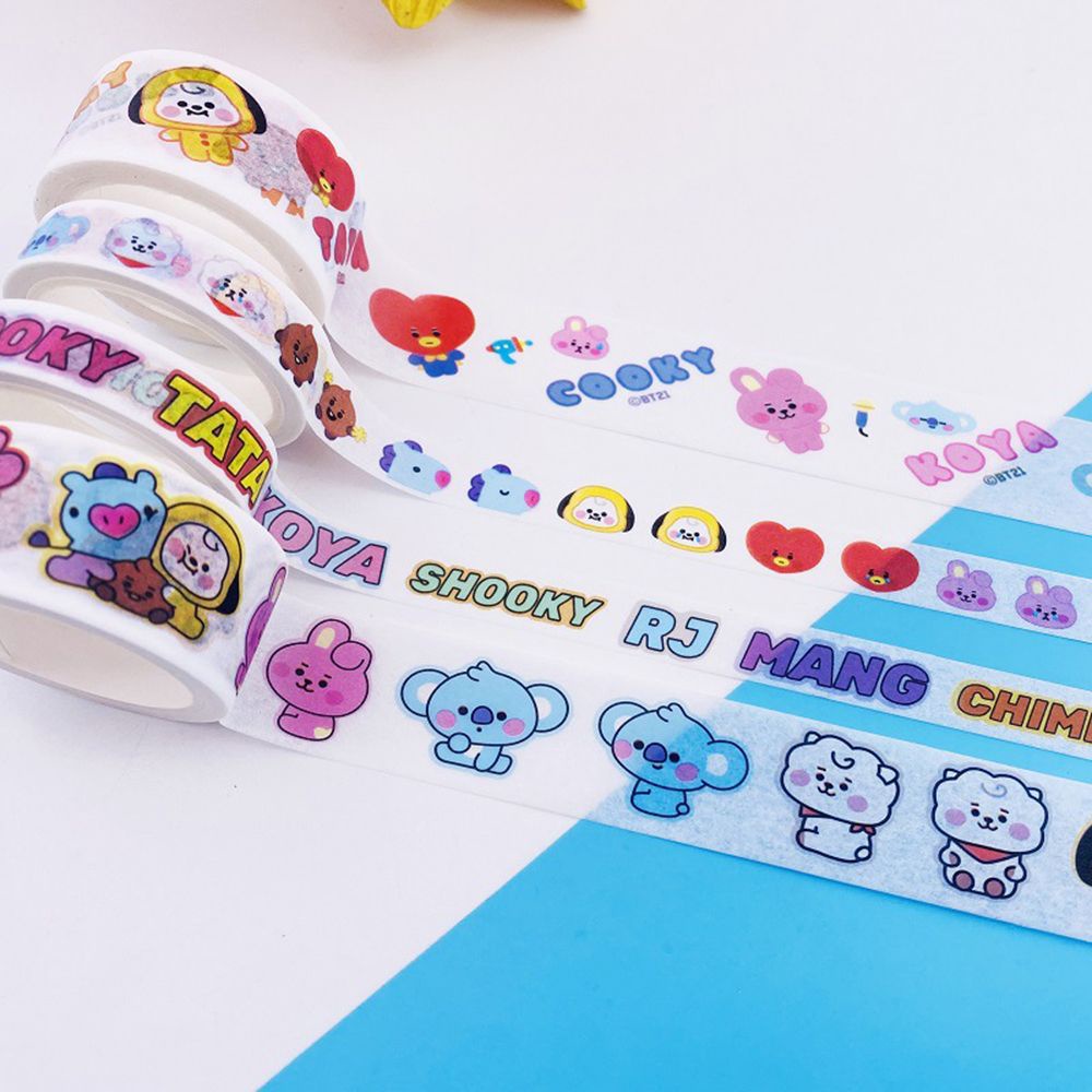 Giới thiệu Cuộn băng keo washi in họa tiết bt21 bts bền không độc hại an toàn cho trang trí sổ lưu niệm