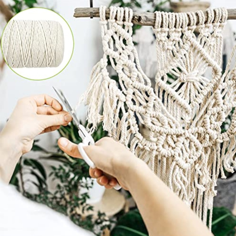 Dây thừng Macrame làm bằng tay *3mm '100m) Dây bông Macrame xoắn để sáng tạo Các tính năng ' Thương hiệu mới và chất lượng cao Màu sắc tươi sáng. thân dây đồng nhất. cảm giác mềm tay . Quà tặng- Dây Macrame là sản phẩm lý tưởng cho những người yêu thích thủ công . Chia sẻ ý tưởng đan lát , Cải thiện kỹ năng thực tế và sáng tạo , và biến nó thành một sự kiện xã hội tốt Natural cotton - Dây Macrame được làm từ bông tự nhiên , không tẩy trắng , phân hủy sinh học và thân thiện với môi trường. không mùi. mềm mại. Tay nghề thủ công chắc chắn - Dây ren dệt từ các sợi dây macrame . Đường kính của dây macrame là 3 mm , chiều dài 109 thước Anh. Nó bền hơn so với dây truyền thống . Công dụng-DIY Thủ công mỹ nghệ Macrame , Treo tường Macrame. giỏ treo , bó hoặc đóng gói. móc treo cây , chụp đèn , ba lô , dụng cụ bắt giấc mơ , trang trí đám cưới Bohemian. làm vườn. trang trí nhà cửa , đồ trang trí Giáng sinh , v.v .