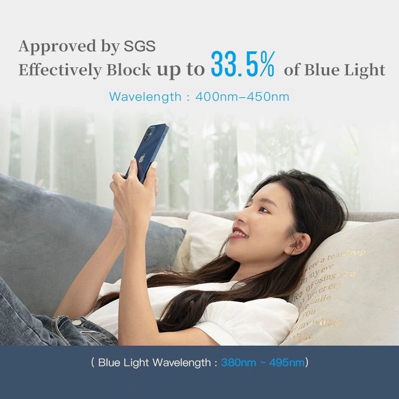 HIỆU QUẢ LÊN ĐẾN 33.5% - Đã được phê duyệt bởi SGS. Hiệu quả chặn ánh sáng xanh lên đến 33.5%, các bước sóng từ 400nm-450nm