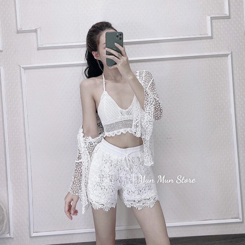 Thời Trang Nữ > Bộ > Bộ đồ gia đình > [𝐌𝐀̃ 𝐌𝐔𝐍𝐌𝟏𝟓𝟗 𝐆𝐈𝐀̉𝐌 𝟓𝟎% Đ𝐎̛𝐍 𝟎𝐤 + ] Sét 3 món đi biển áo choàng quần ren + áo bra - sét đi biển bán tách theo phân loại