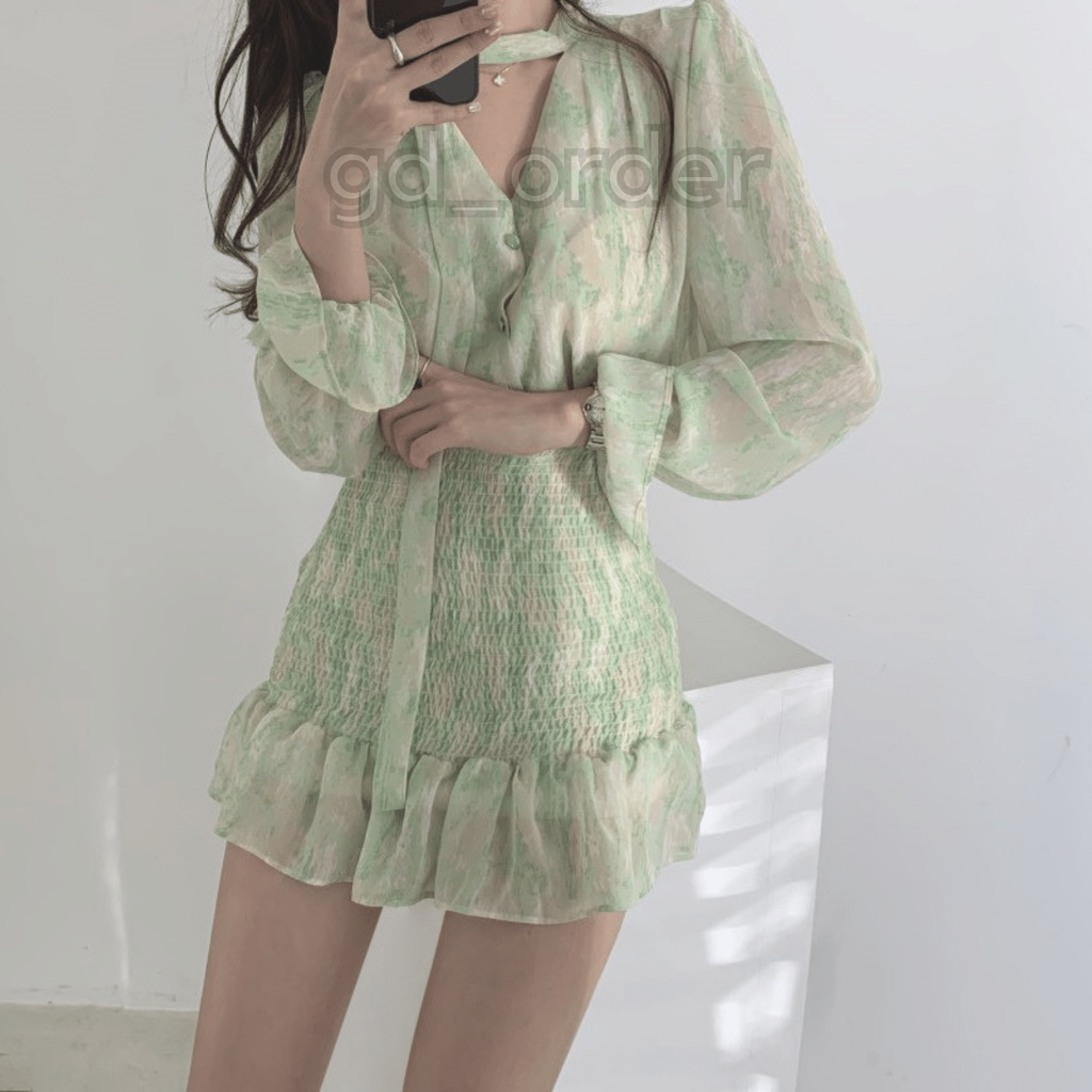 Giới thiệu D11|Đầm voan nữ thiết kế hoa nhí thanh lịch nhúng ôm body đẹp gd_order