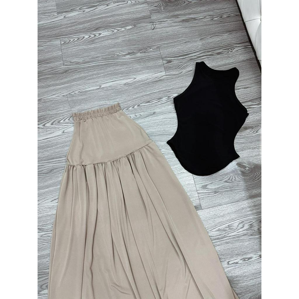 Giới thiệu D43 Set Áo Ba Lỗ Vạt Bầu + Chân Váy Midi Xòe Dáng Dài Chất Thun Thời Trang Nữ