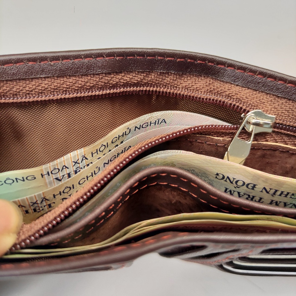 Giới thiệu ( DA BÒ THẬT ) Ví Bóp Nam HT Da Bò Cắt Nguyên Tấm Đốt Không Cháy dáng ví ngang ngang có khóa kéo bỏ vừa tất cả các loại