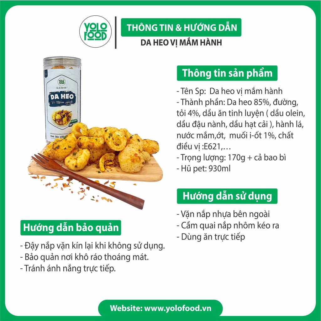 Giới thiệu Da heo mắm hành 170g YOLO FOOD đồ ăn vặt, ngon, chất lượng, da heo chiên giòn thơm lừng, giòn rụm, đóng hộp atvstp