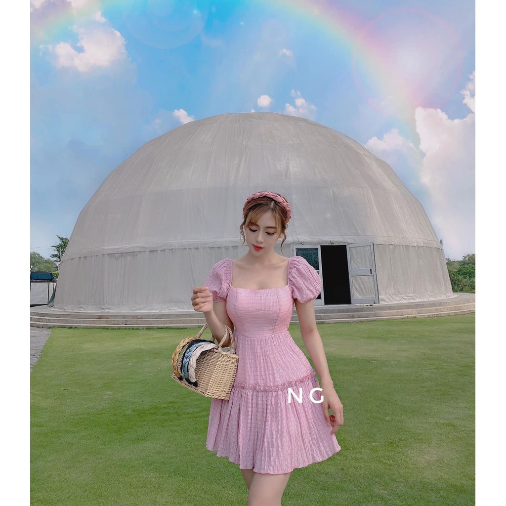 Giới thiệu [Đầm Mới] Đầm Xòe Tay Phồng Tùng Nhún Tầng Cột Dây Sau Lưng