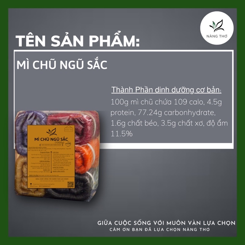 Mỳ chũ ngủ sắc gồm 5 vị: làm từ gạo bao thai hồng Thông tin dinh dưỡng/100Gr + Calories: 109gr