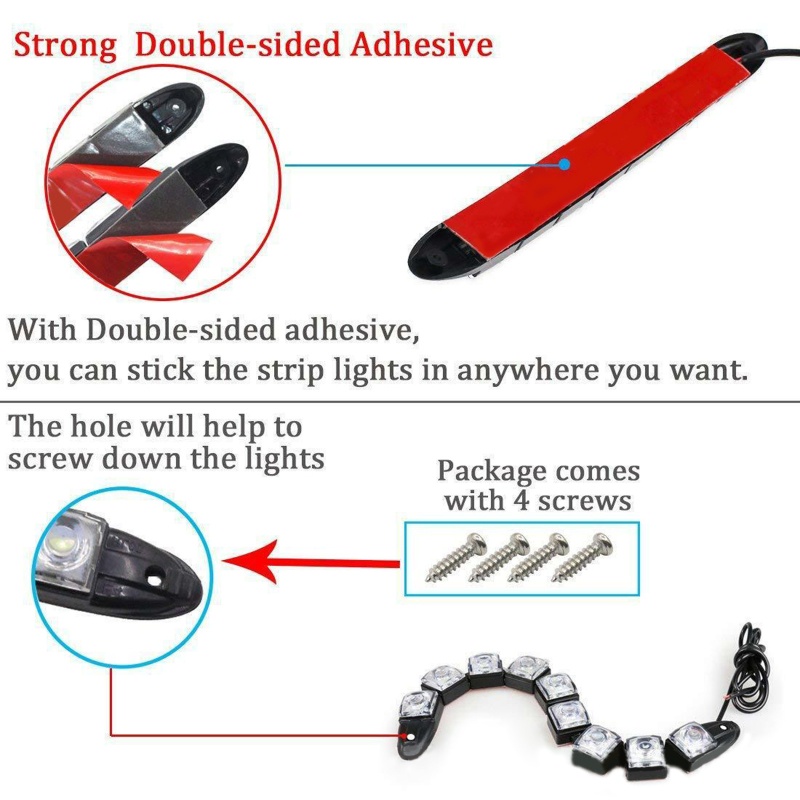 Đèn LED DRL Xe hơi chạy ban ngày Dải chống thấm linh hoạt Đèn pha tự động Đèn xi nhan Đèn phanh 12V Các tính năng - Nguồn sáng LED công suất cao nhập khẩu được sử dụng và chụp đèn sử dụng thấu kính ngưng tụ để tạo ra ánh sáng mạnh , đẹp và trang nhã . Với thiết kế vật lý độc đáo , nó có thể được uốn cong 360 độ và lắp đặt theo các hướng khác nhau - phạm vi lớn hơn phù hợp với các vị trí lắp đặt phức tạp của ô tô . Mặt sau được trang bị băng dính hai mặt siêu bền để dán , và có lỗ bắt vít ở mỗi đầu của thân đèn để khóa các vít an toàn gấp đôi . Thân đèn không thấm nước với thiết kế kín . Cấp chống thấm nước IP67, có thể được sử dụng cho đèn chạy ban ngày , đèn sương mù , đèn phanh , đèn lùi , đèn trang trí , đèn soi biển số , đèn cửa. đèn gầm để sử dụng trang trí , chỉ cần thay đổi phương thức kết nối đường dây Và vị trí lắp đặt - Lắp đặt mô hình , với việc lắp đặt đơn giản - bên trong và bên ngoài ô tô , phần dưới của ô tô có thể được lắp đặt ở mọi nơi . Phương pháp đấu dây - mỗi đèn có hai dây. đỏ và đen , dây đỏ được nối với cực dương của nguồn điện , và dây đen được nối với cực âm .