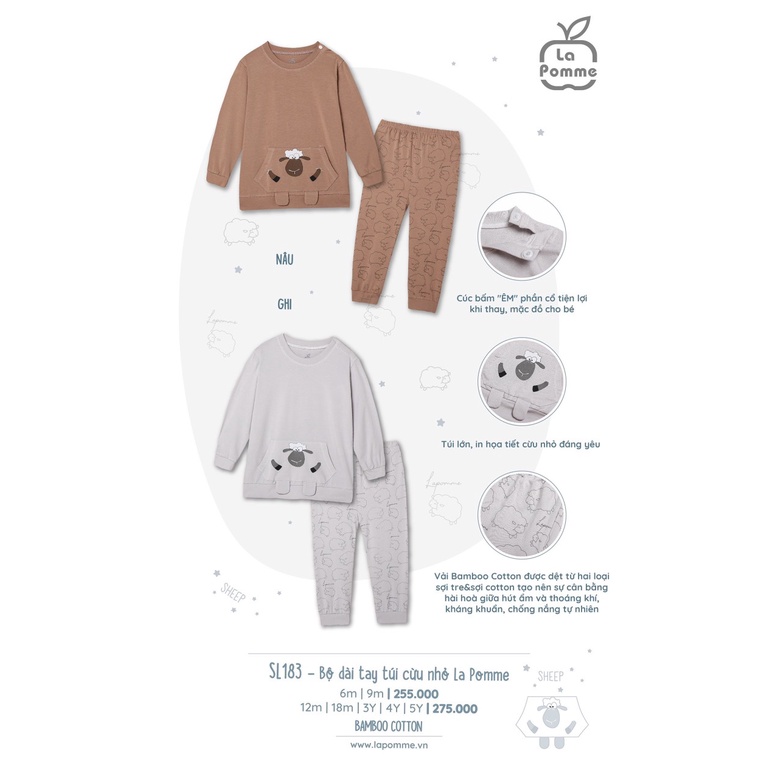 Giới thiệu Bộ dài tay cho bé Lapomme Túi cừu nhỏ nâu