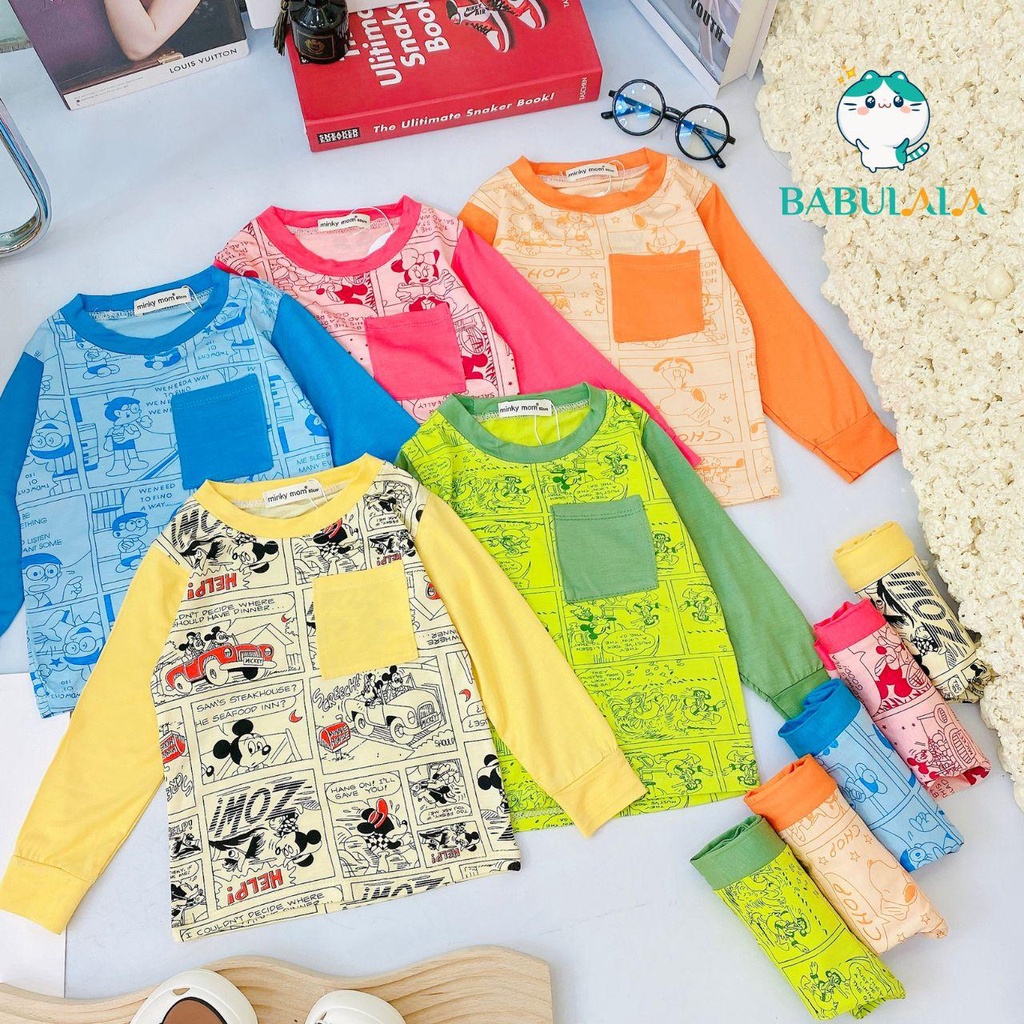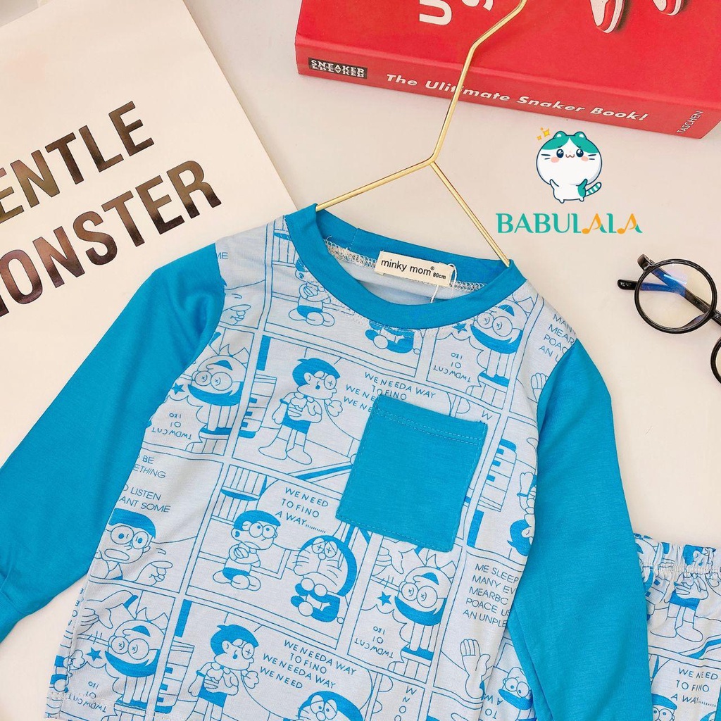 Giới thiệu Đồ Bộ Dài Tay MINKY MOM Chính Hãng Vải Thun Lạnh Raplan Tay Hình in Thấm Và Túi Thật Bé 8-20kg - Babulala