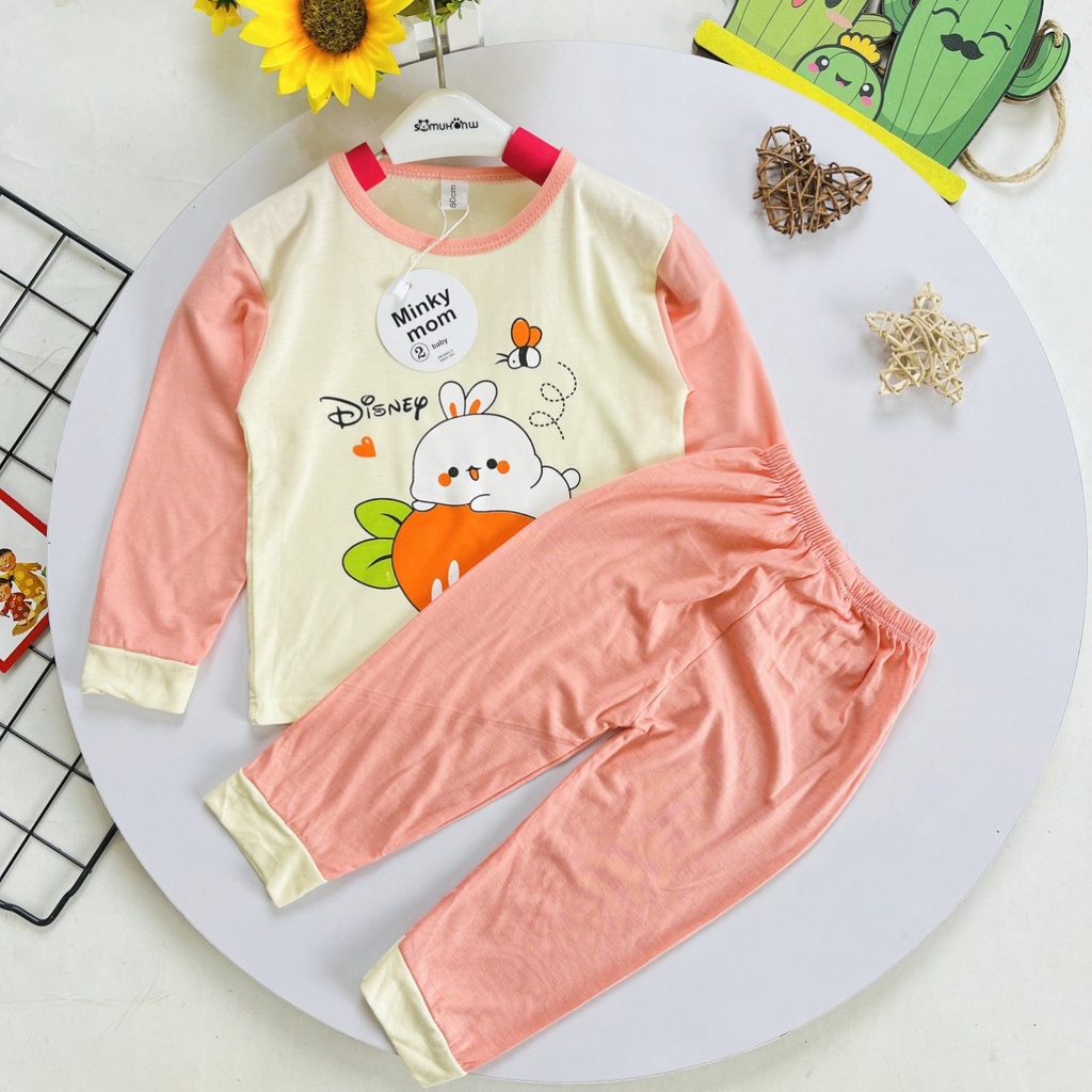 Giới thiệu Bộ Dài Tay Thun Lạnh Minky Mom In Hình Động Vật Bo Chun Phối Tay Dễ Thương Cho Bé