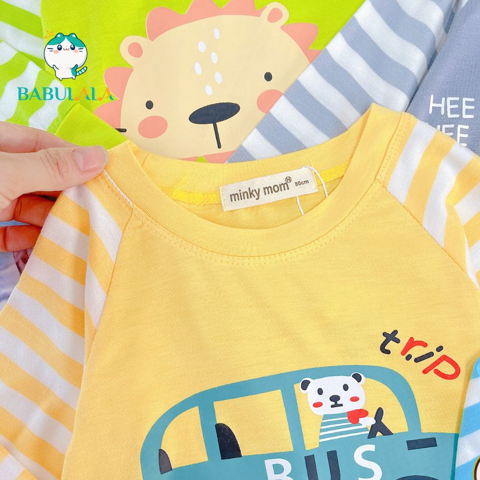 Thời Trang Trẻ Em > Quần áo em bé > Bộ quần áo > Đồ Bộ Dài Tay Thun Lạnh Minky Mom Chính Hãng Thun Lạnh Dệt Visco Hình Mèo Sư Tử Cún Con Cute Cho Bé 8-20kg - Babulala