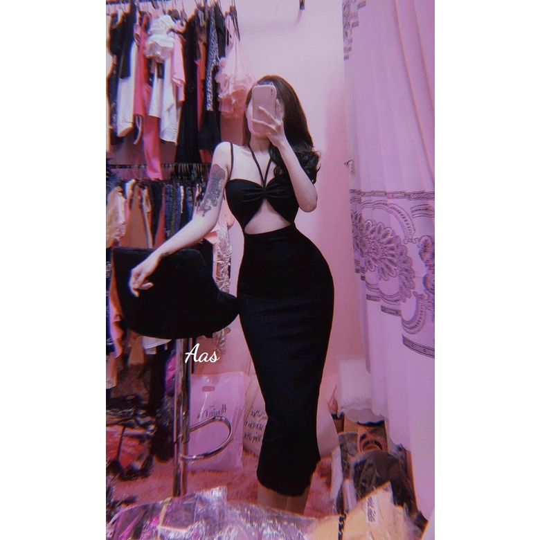 Thời Trang Nữ > Đầm/Váy > Đầm 2 dây cột 2 kiểu dây nơ ngực hoặc yếm cổ khoét eo cực xinh , chất thun gân mềm mịn thy hang