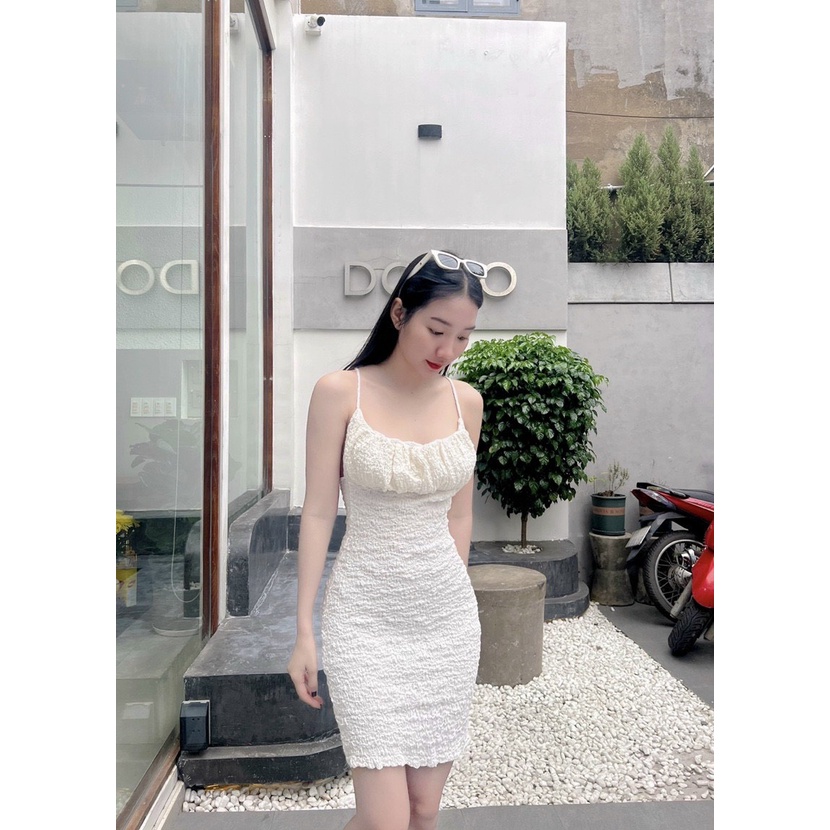 Đầm 2 dây xốp thiên vân nhúm ngực hở lưng ôm body dáng ngắn cực xinh