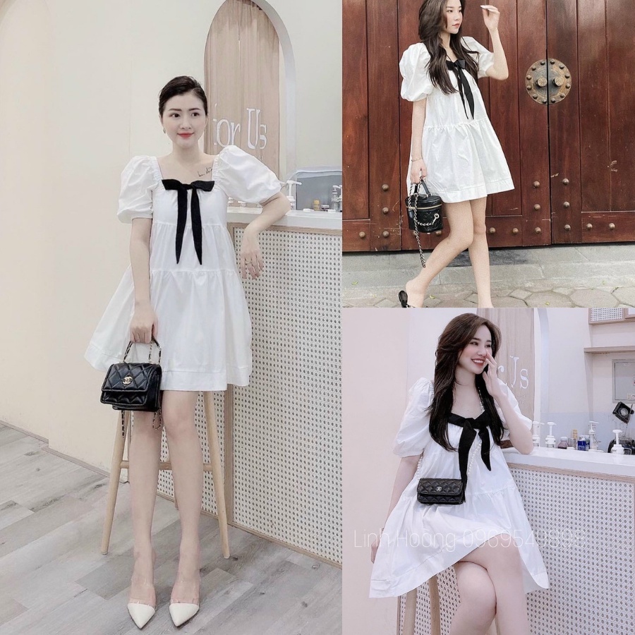 Giới thiệu Đầm Babydoll Nữ,đầm Váy Xòe Cổ Vuông Đính Nơ Tiểu Thư Công Chúa Dự Tiệc Dạo Phố Sang Chảnh Thời Trang Thiết Kế Xm Minh