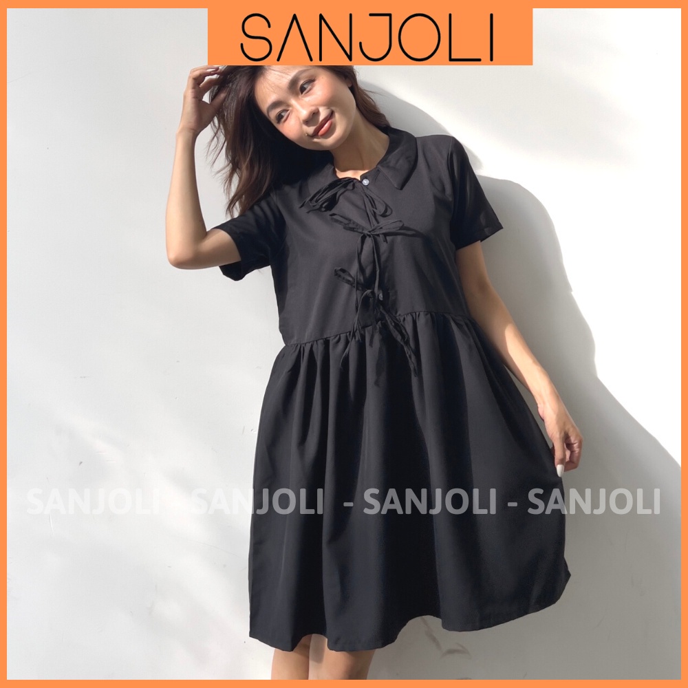 Giới thiệu Đầm Babydoll SANJOLI Váy Dự Tiệc Cổ Sơ Mi Cột Nơ Dáng Xòe Vải Cotton Lạnh Thiết Kế Hàn Quốc Ulzzang Đi Chơi VD019