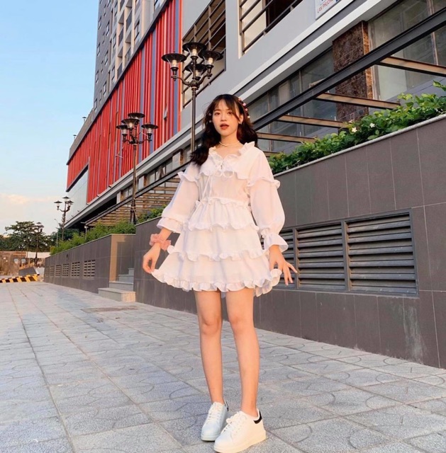 Giới thiệu Đầm babydoll tay dài phối bèo trắng tiểu thư công chúa nhẹ nhàng