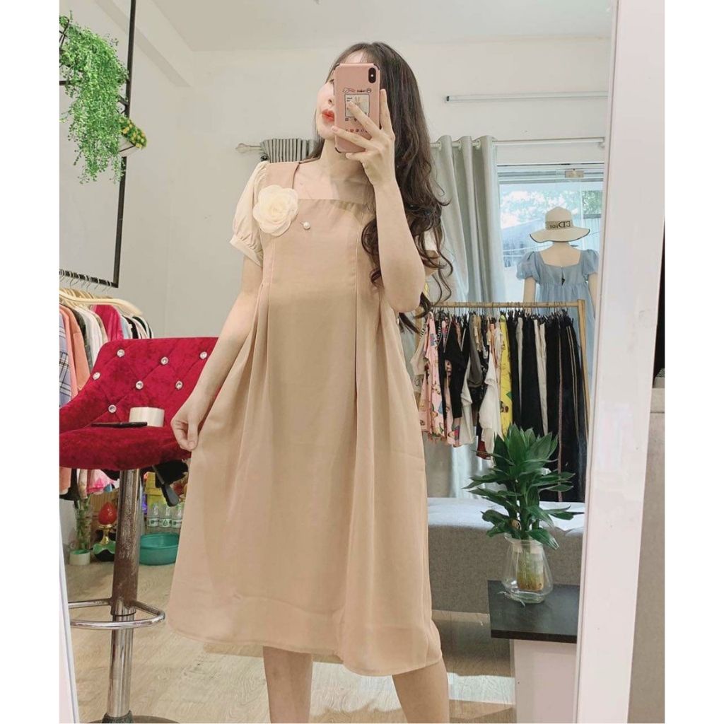 Giới thiệu Đầm bầu cổ vuông hoa ngực M317 vải cát hàn thời trang thiết kế Mom and baby