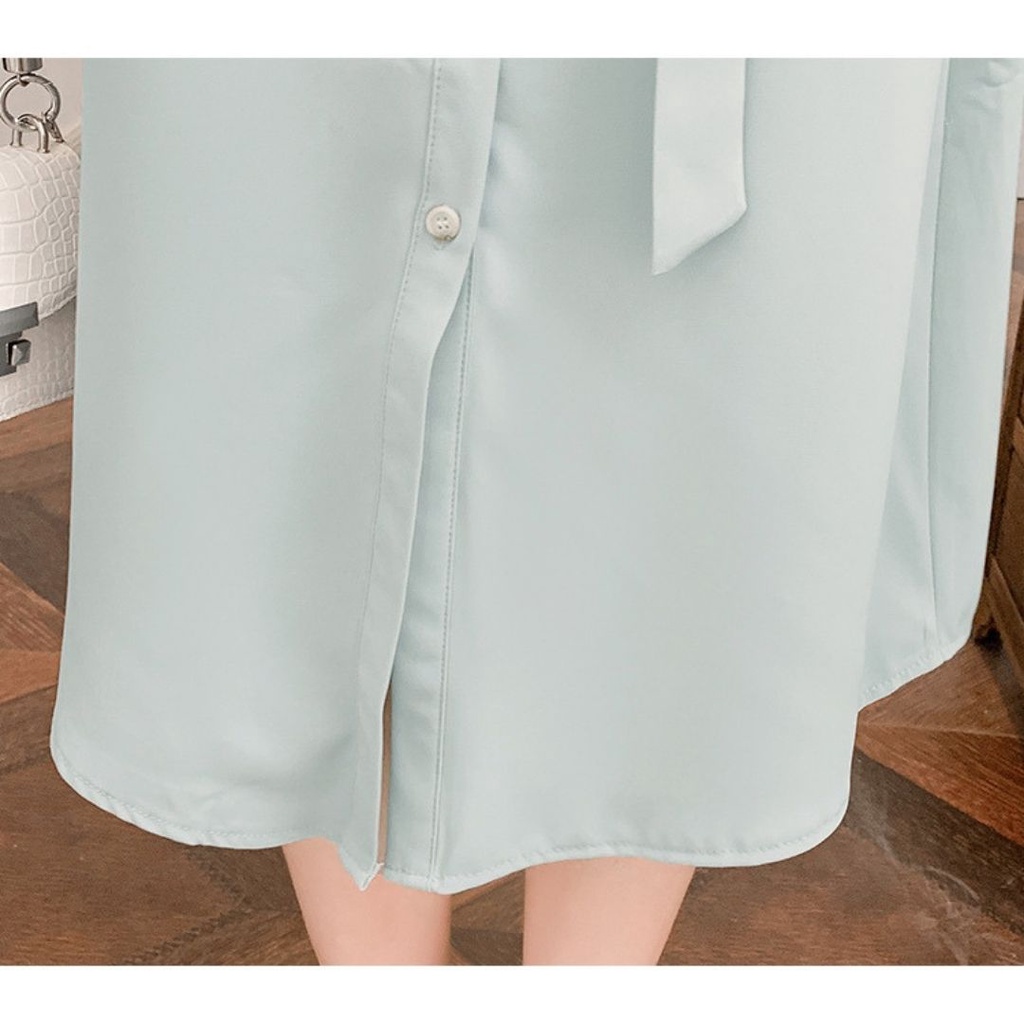 Giới thiệu Đầm bầu công sở sơ mi thắt eo váy sơ mi tay lỡ hai màu hottrend năm 2022