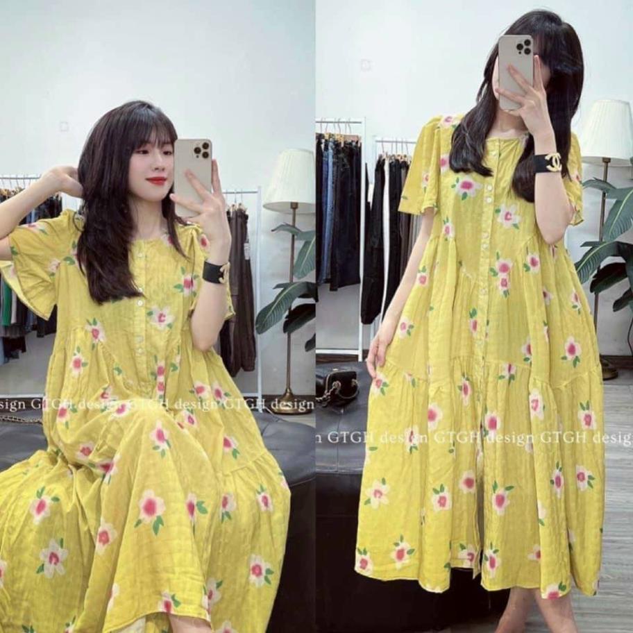 Giới thiệu Đầm bầu hoa nhí vintage tiểu thư váy bầu dáng dài sơ mi sag chảnh
