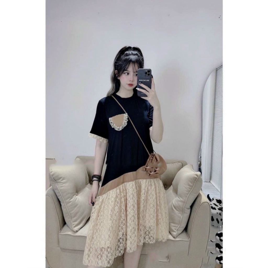 Giới thiệu Đầm bầu váy bầu chân ren thời trang thiết kế MSP458 vải cotton freesize Mom and baby