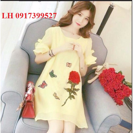 Đầm bầu đầm bầu công sở đẹp hoa hồng thời trang Hàn Quốc