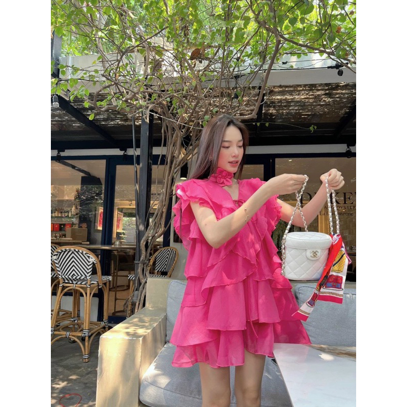 Giới thiệu Đầm bèo tầng tay tiên chất tơ voan form suông kèm hoa cổ