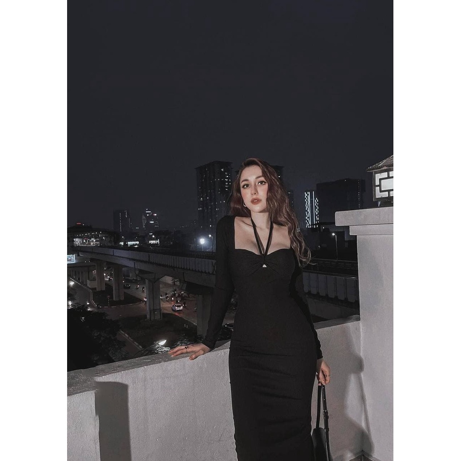 Giới thiệu Đầm Body Khoét Ngực Thắt Dây Yếm, Đầm maxi body thiết kế KC1365