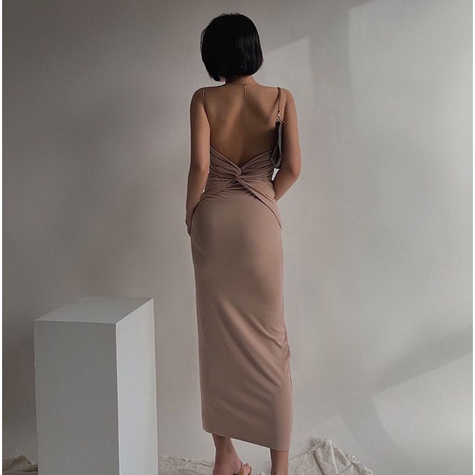 Giới thiệu Đầm Body Sexy Hai Dây Hở Lưng Dáng Dài Thanh Lịch Độ Đàn Hồi Phong Cách Âu Mỹ Váy Nữ