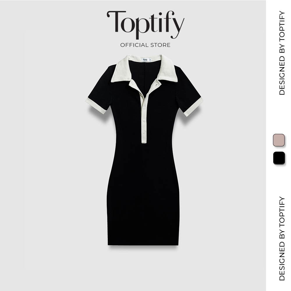 Giới thiệu Đầm body thun ôm dáng TOPTIFY tay ngắn cổ Polo viền phối giãn New Chapter Dress DT16