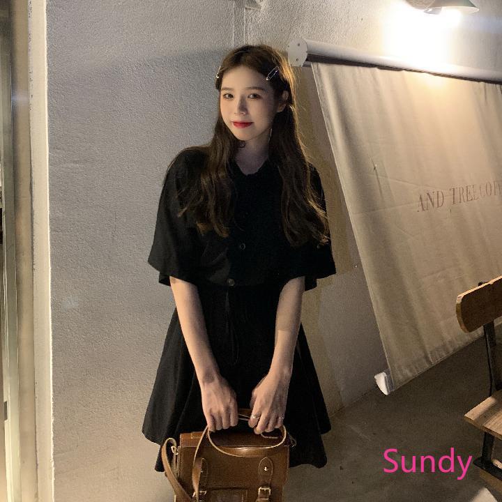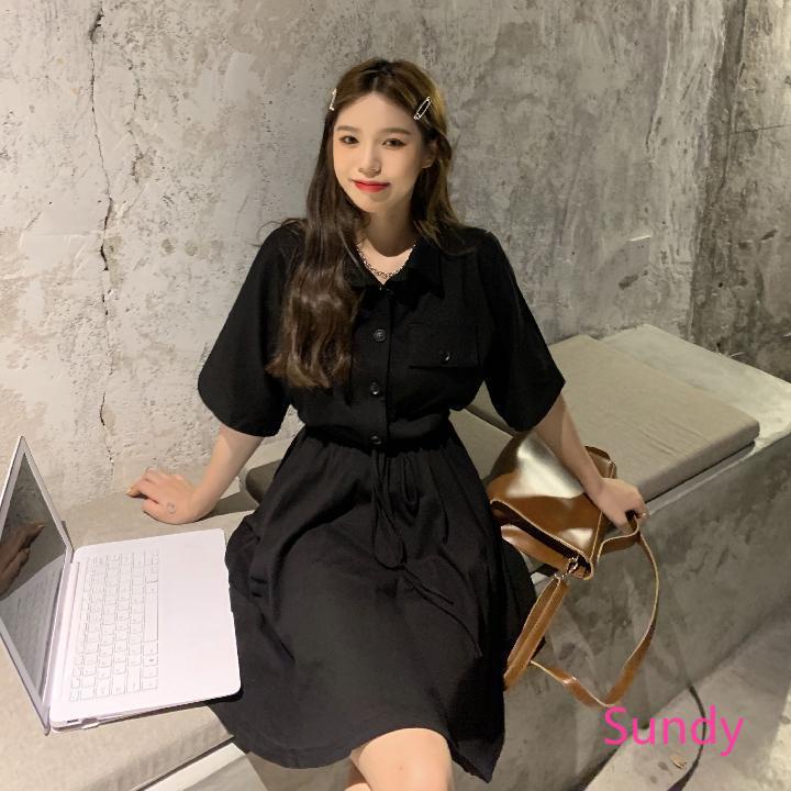 Vải / Chất liệu: Tơ sữa / Polyester (Sợi Polyester) Nội dung thành phần: 71% (bao gồm) - 80% (bao gồm) Phong cách: Đơn giản đi lại / Phiên bản Hàn Quốc Các yếu tố / Thủ công mỹ nghệ phổ biến: Nút, Nếp gấp Phong cách: Váy chữ A Chiều dài tay áo: Tay áo ngắn Chiều dài váy: Váy midi Kiểu cổ áo: Cổ áo POLO