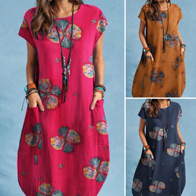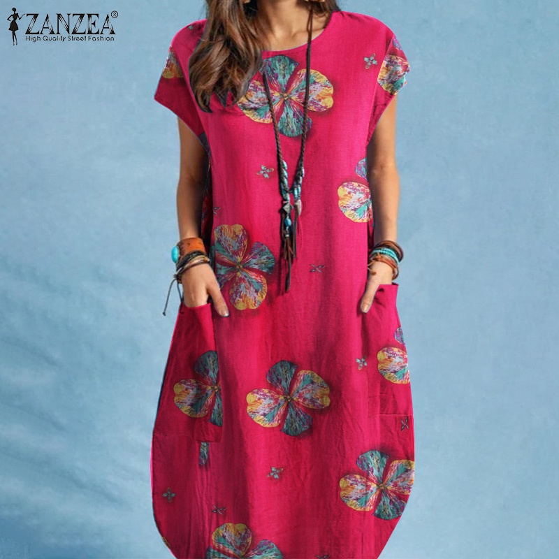 Giới thiệu Đầm chữ A Zanzea tay ngắn cổ tròn in họa tiết hoa phong cách Bohemian thời trang cho nữ