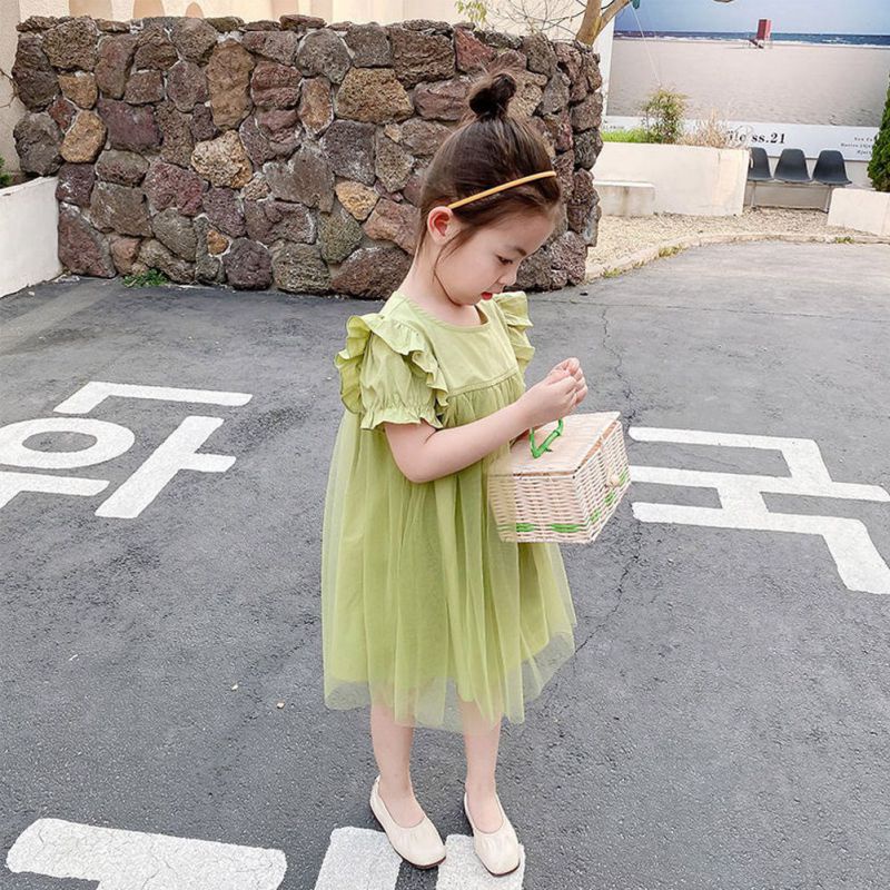 Giới thiệu Đầm Công Chúa Tay Cộc Phối Lưới Màu Sắc Trơn Thời Trang Mùa Hè Cho Bé Gái