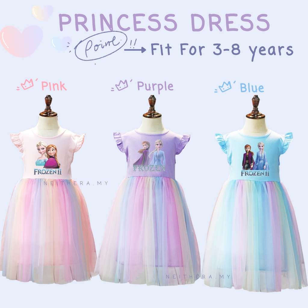 Giới thiệu Đầm Công Chúa Elsa Anna Tay Dài Phối Lưới Màu Cầu Vồng Dễ Thương Thời Trang 2023 Cho Bé Gái