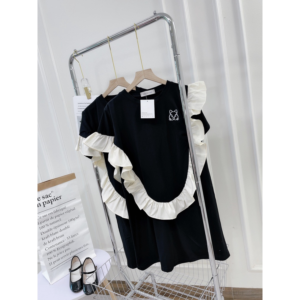 Giới thiệu Đầm cotton phối bèo thêu hình chú sóc xinh xắn DN745