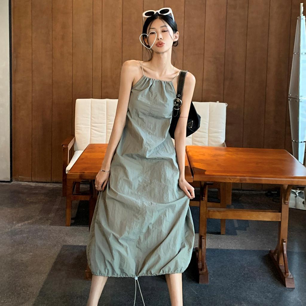 Giới thiệu Đầm Dài Hai Dây Dáng Chữ A Rộng Cổ Cao Vừa Vặn Phong Cách Hàn Quốc Gợi Cảm Dành Cho Bạn Nữ