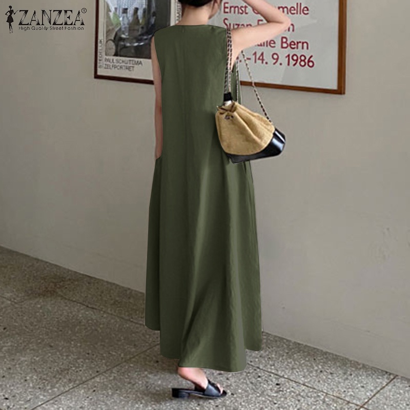 Giới thiệu Đầm dài ZANZEA không tay có túi thời trang cho nữ
