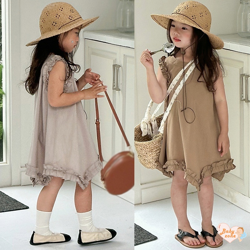 Giới thiệu Đầm Dài Ngang Gối Không Tay Cổ Tròn Màu Trơn Phong Cách Hàn Quốc Thời Trang Mùa Hè Dành Cho Bé Gái