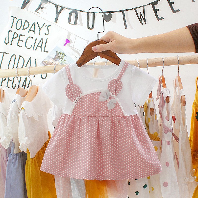 Giới thiệu Đầm dài tay giả hai lớp họa tiết chấm bi cho bé