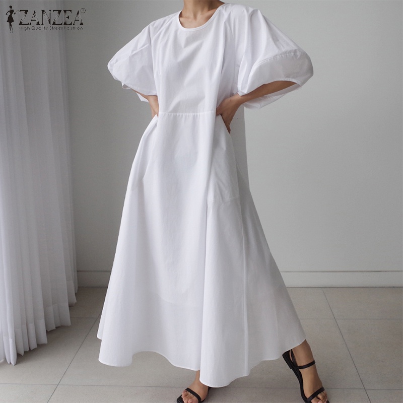 Giới thiệu Đầm dài Zanzea form rộng tay phồng cổ tròn màu trơn thời trang đường phố Hàn Quốc cho nữ