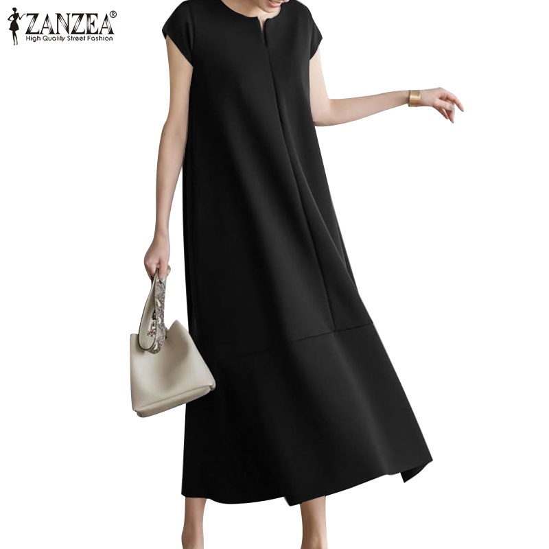 Giới thiệu Đầm dài ZANZEA tay ngắn cổ chữ V dáng rộng thời trang cho nữ
