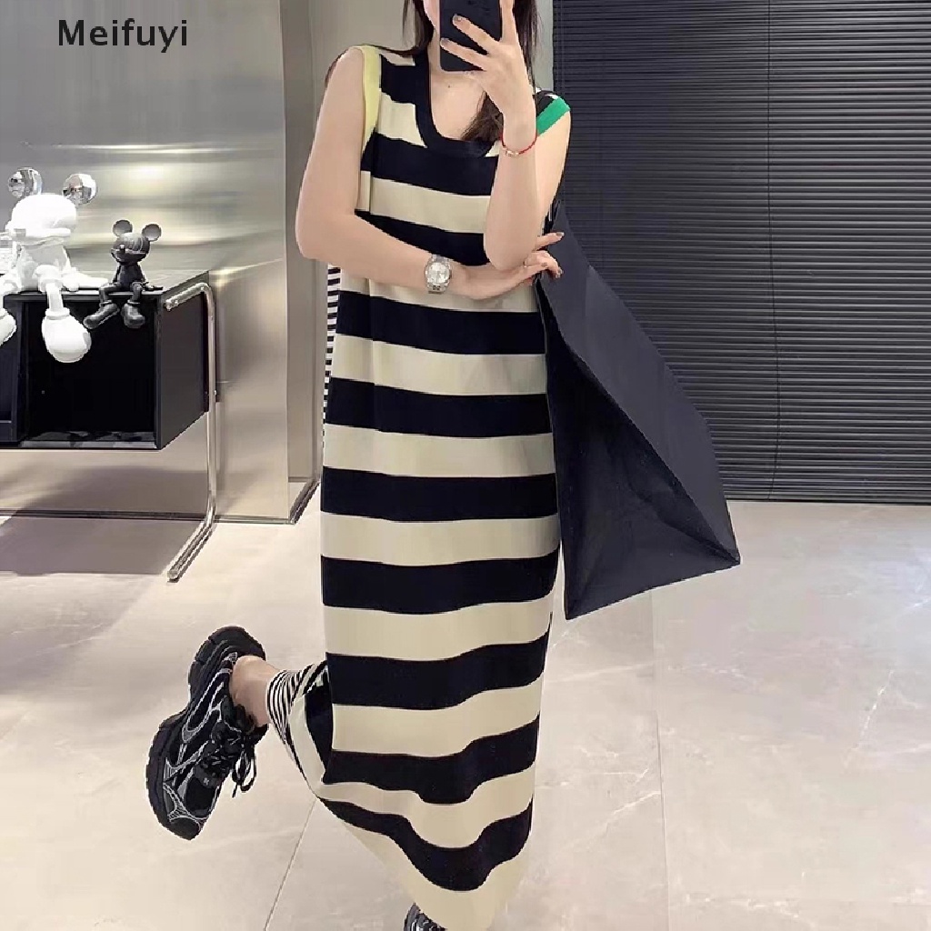 Giới thiệu Đầm Dệt Kim Dáng Chữ A Cổ Tròn Họa Tiết Kẻ Sọc Phong Cách Hàn Quốc Thời Trang Cho Nữ