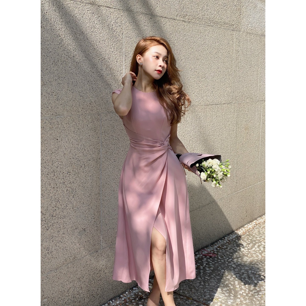 Giới thiệu Đầm độn vai thanh lịch sang chảnh chất liệu lụa cao cấp JOVEN, thiết kế body độn vai nhún eo dáng dài, đi làm đi cafe