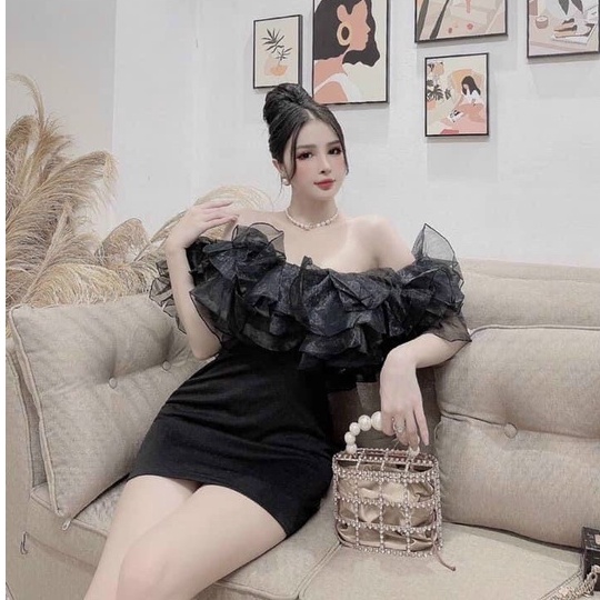 Giới thiệu Đầm Dự Tiệc Body Trễ Vai Voan Kiếng Xếp Tầng (CÓ MÚT NGỰC) 2 Màu Trắng & Đen Sang Chảnh Thời Trang Váy Nữ Xm Minh Phúc