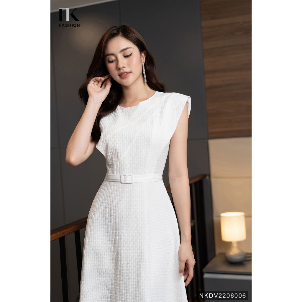 Đầm Dự Tiệc Dáng Xòe Vải Xốp Nổi 3D Tay Cánh Tiên NK Fashion Kèm Đai Thanh Lịch Đi Tiệc Sang Trọng NKDV2206006