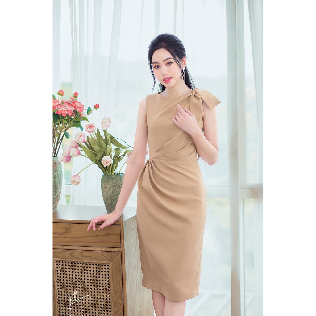 Đầm ôm body kiểu sát nách nhún eo nơ vai