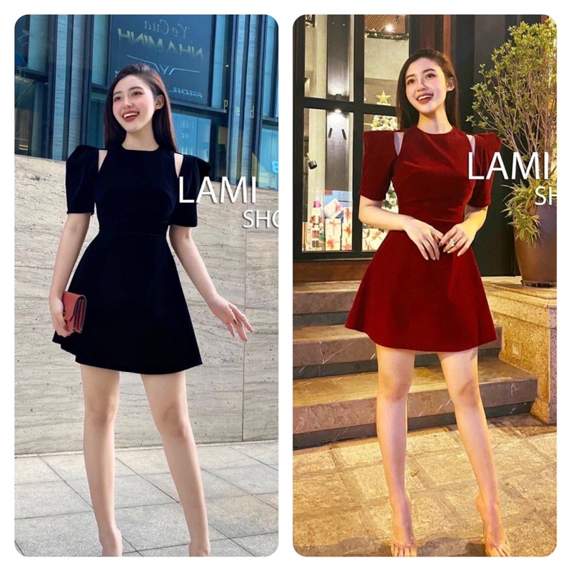 Giới thiệu Đầm dự tiệc tay bồng khoét vai dáng xoè chất nhung tiên mịn phong cách sang trọng
