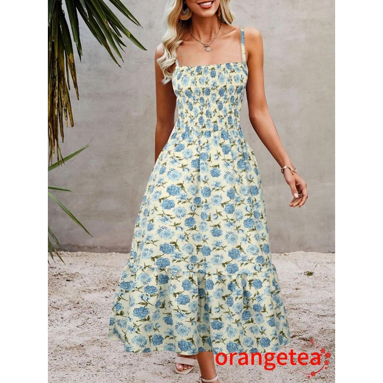 Giới thiệu Đầm Hai Dây Dáng Dài Họa Tiết Hoa Thời Trang Mùa Hè Cho Nữ
