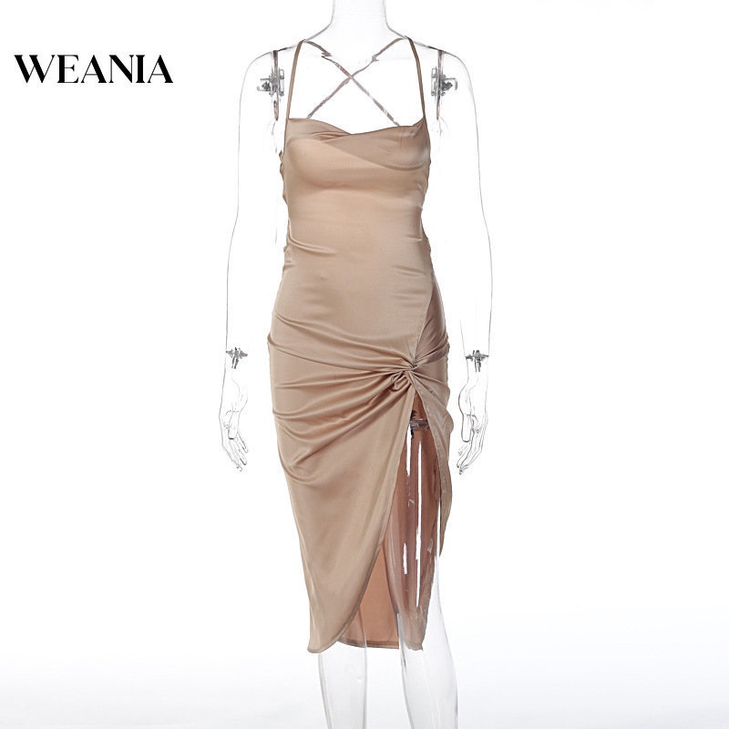 Giới thiệu Đầm Hai Dây Dáng Dài Vải Satin Xẻ Tà Quyến Rũ Cho Nữ