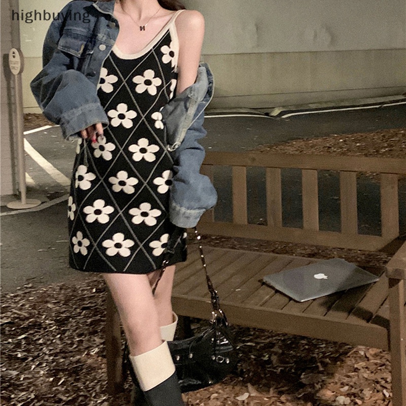 Giới thiệu Đầm Hai Dây Dệt Kim Họa Tiết Hoa Phong Cách Retro Cho Nữ